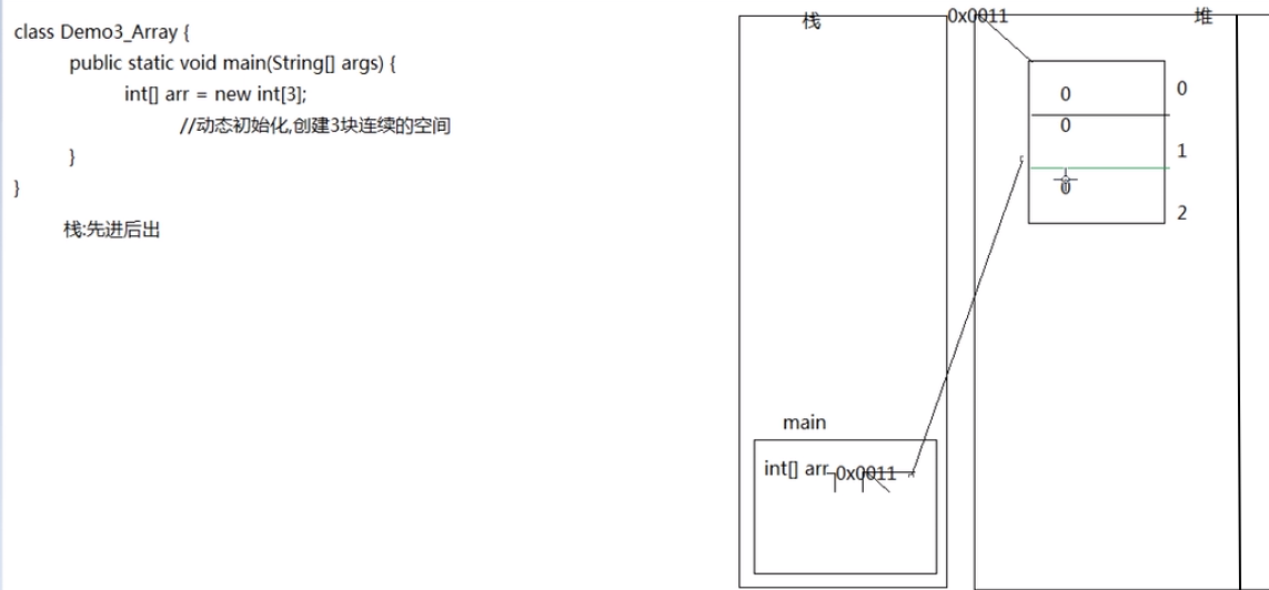 然后 int[] arr 语句会在栈里新的一块区域(虽然不确定但是感觉就和python里创造一个新的标签是一个意思),然后把实际的数据内容丢到堆里去创造,生成一个详细的地址,然后这个arr标签再指向这个地址。