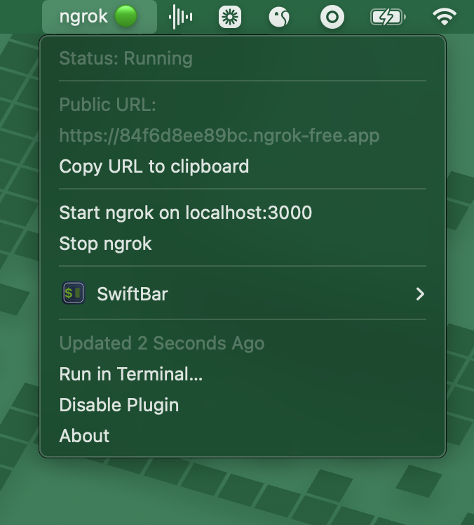 A SwiftBar plugin to control ngrok from your macOS menu bar.