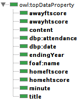 | Classes | Data properties | Object properties |