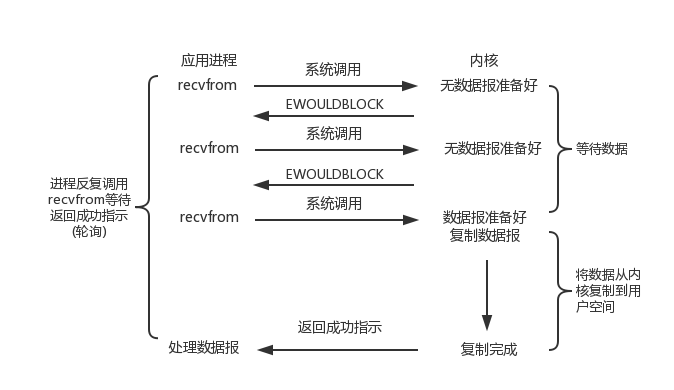 阻塞与非阻塞的区别在于进行读操作和写操作的系统调用时,如果此时内核态没有数据可读或者没有缓冲空间可写时,是否阻塞。