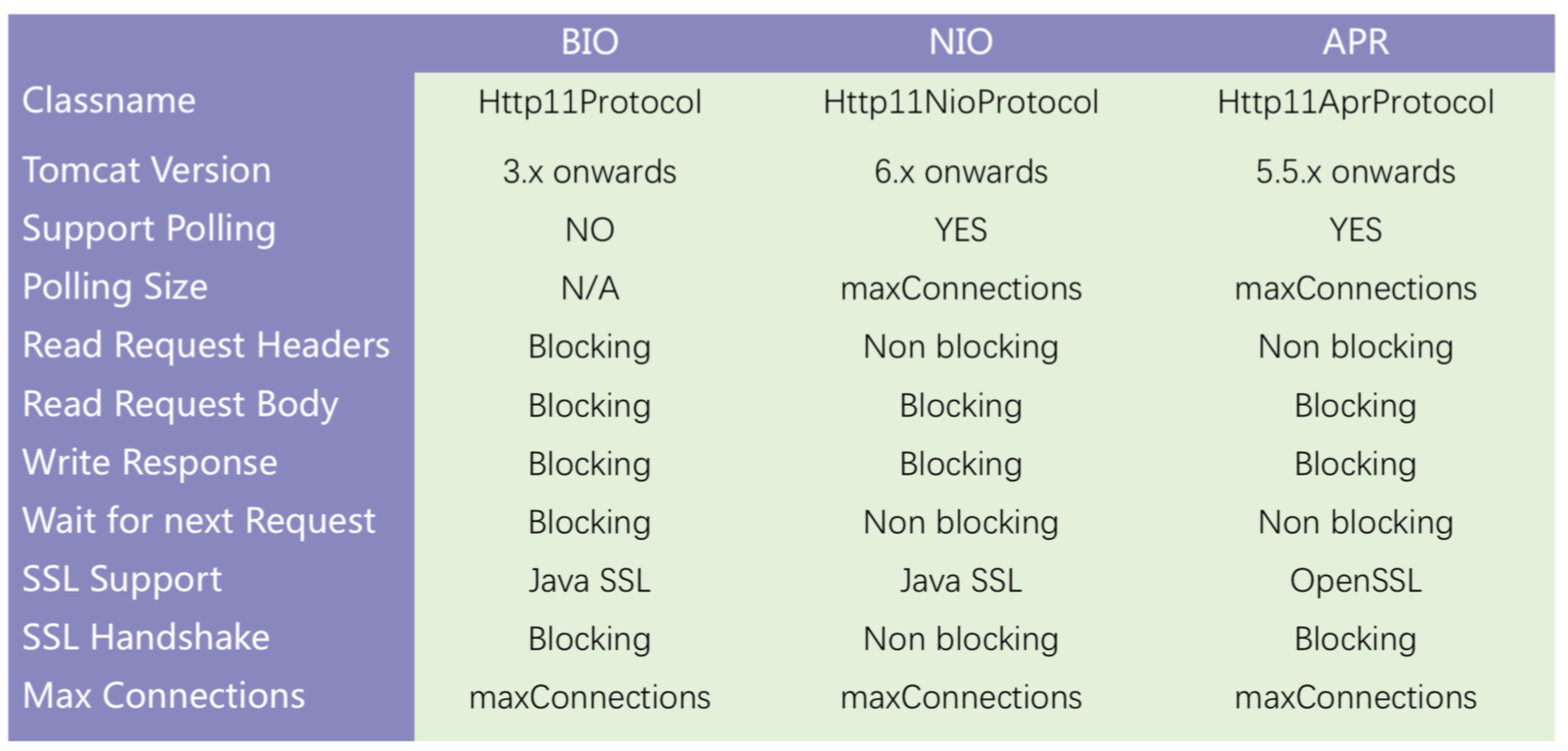 - Wait for next Request - 在等待下一个请求时,处理线程是否释放,BIO 是没有释放的,所以在 keep-alive=true 的情况下处理的并发连接数有限