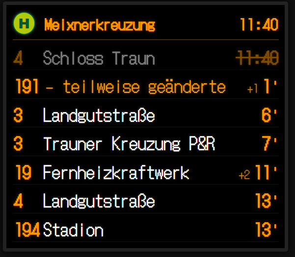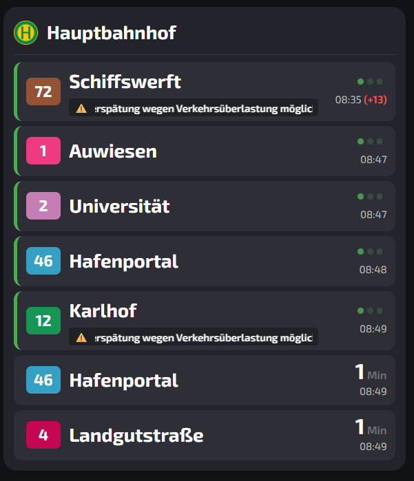sensor.ihre_haltestelle_nachste_abfahrt) enthält im Hintergrund die unsichtbarendepartureList-Attribute für die Custom Cards. Wählen Sie in den Lovelace-Karten immer diesen ersten Sensor aus!