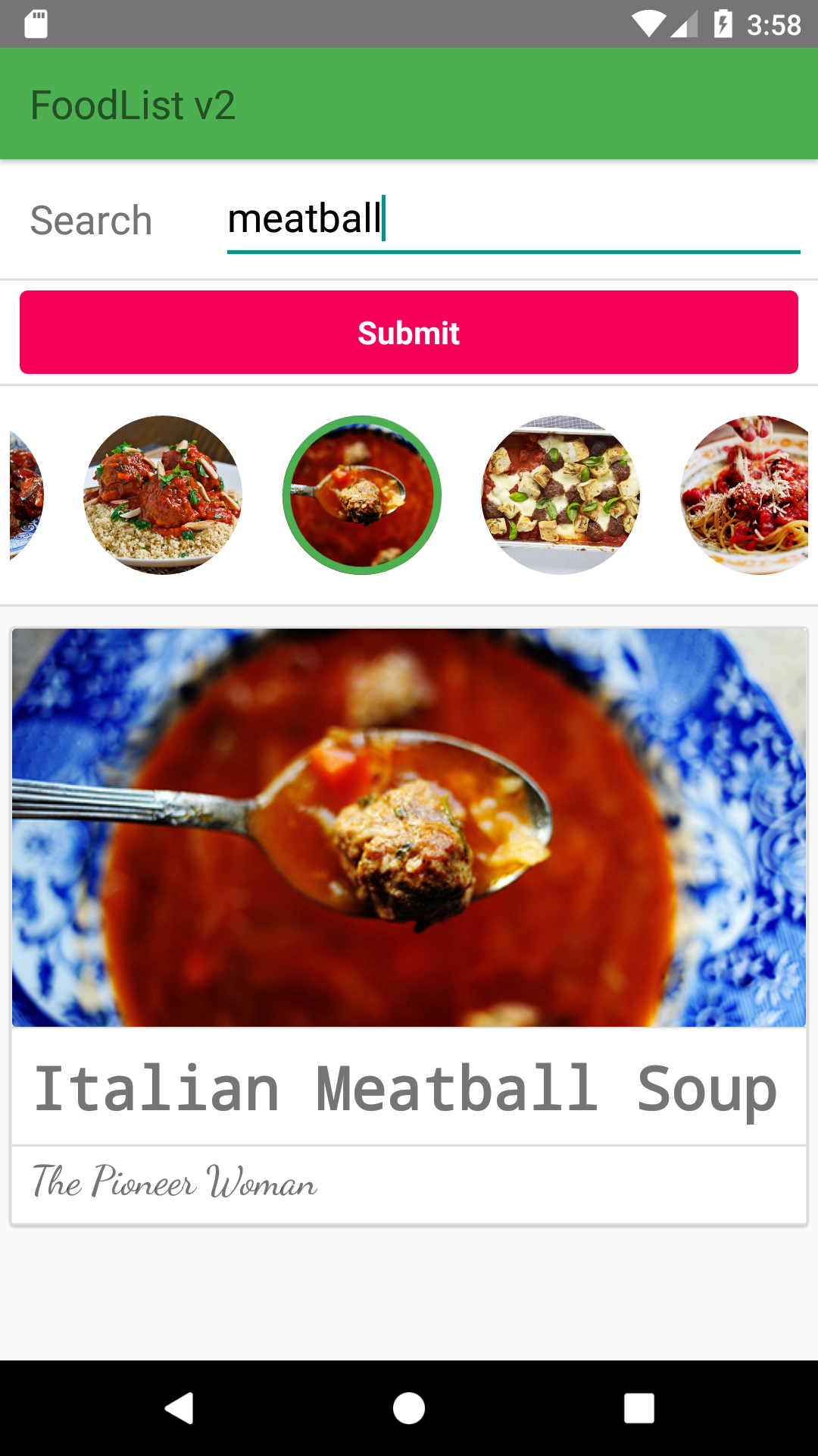 - Creating custom Components such as circle RecipeThumbnail and Card to display recipe overview.