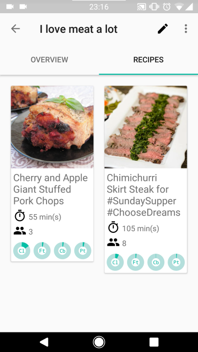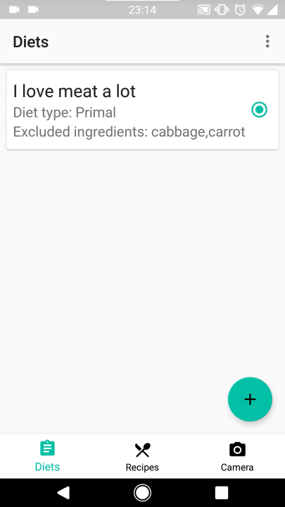- Adding and removing recipes with ease, either from diet management activity or recipes searching activity.