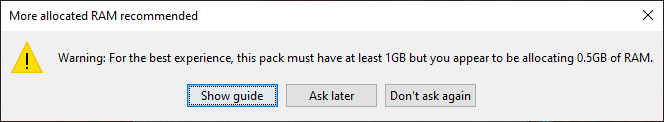 You can now let people know when they haven't allocated enough RAM at launch with a helpful pop-up. Or if they're using the wrong Java version or architecture. Or if they're allocating waaaay too much RAM, or a combination of the above.